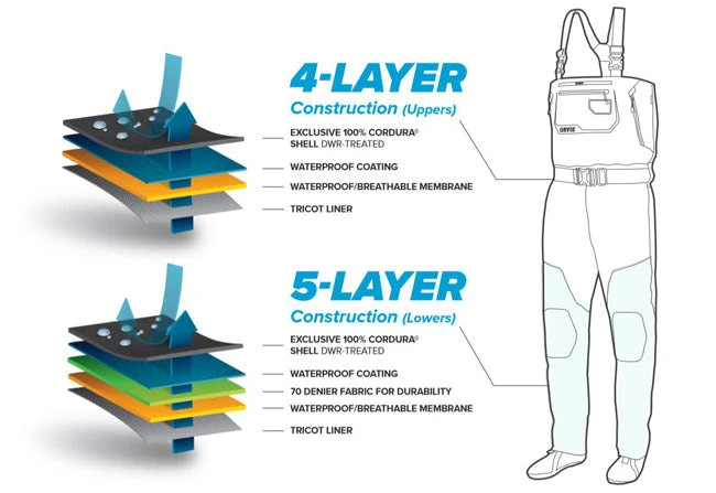 Orvis incorporated more room in the chest and leg areas if you choose to add additional layers for warmth. The fleece-lined handwarmers are fantastic, and they dry quickly after they get wet.